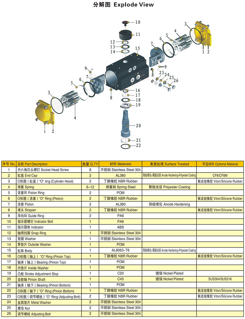 由于AT氣動執行器執行機構有結構簡單、輸出推力大、動作平穩可靠、安全防爆等優點,在化工、煉油等對安全要求較高的生產過程中得到廣泛的應用。